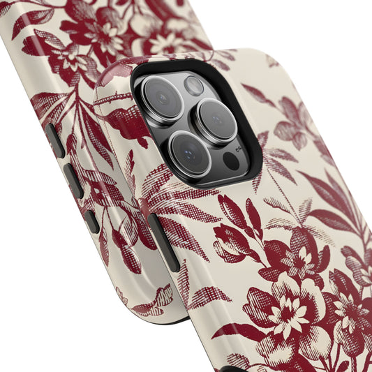 Vintage Maroon Botanical Sketch Phone Case – MagSafe Compatible for iPhone & Samsung Galaxy