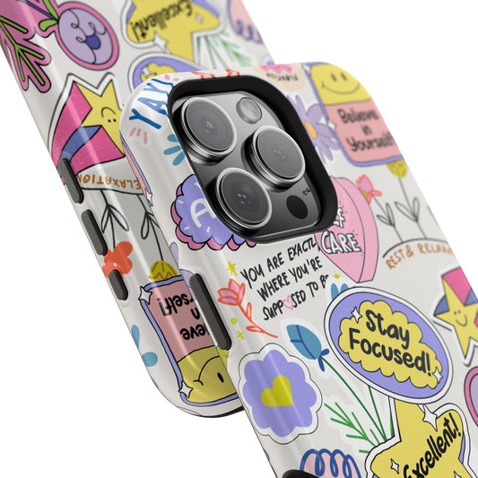 Motivational Doodle Collage Phone Case – MagSafe Compatible for iPhone & Samsung Galaxy