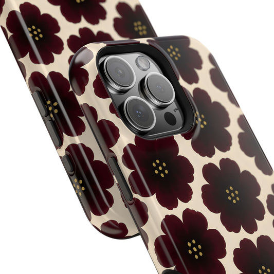 Noir Blossom Retro Floral Pattern Phone Case – MagSafe Compatible for iPhone & Samsung Galaxy
