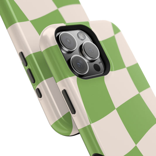 Green Wavy Checkerboard Aesthetic Phone Case – MagSafe Compatible for iPhone & Samsung Galaxy