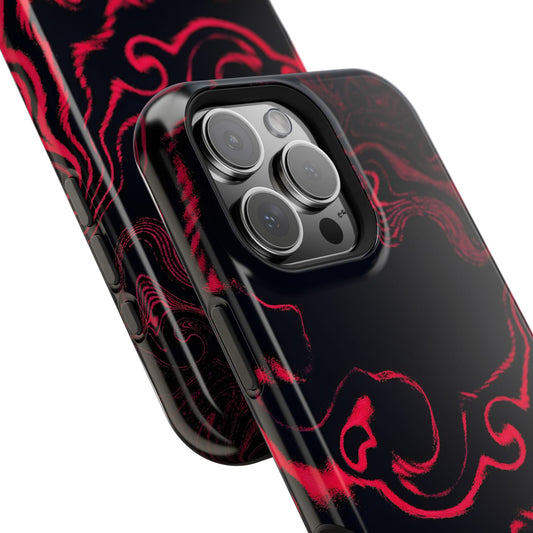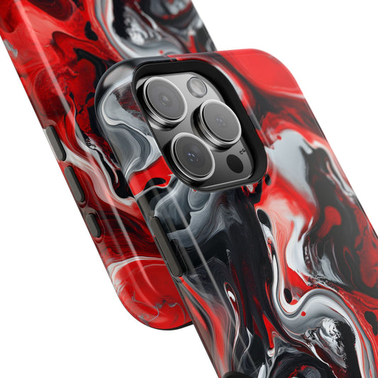 Crimson Chaos Abstract Swirl Phone Case – MagSafe Compatible for iPhone & Samsung Galaxy